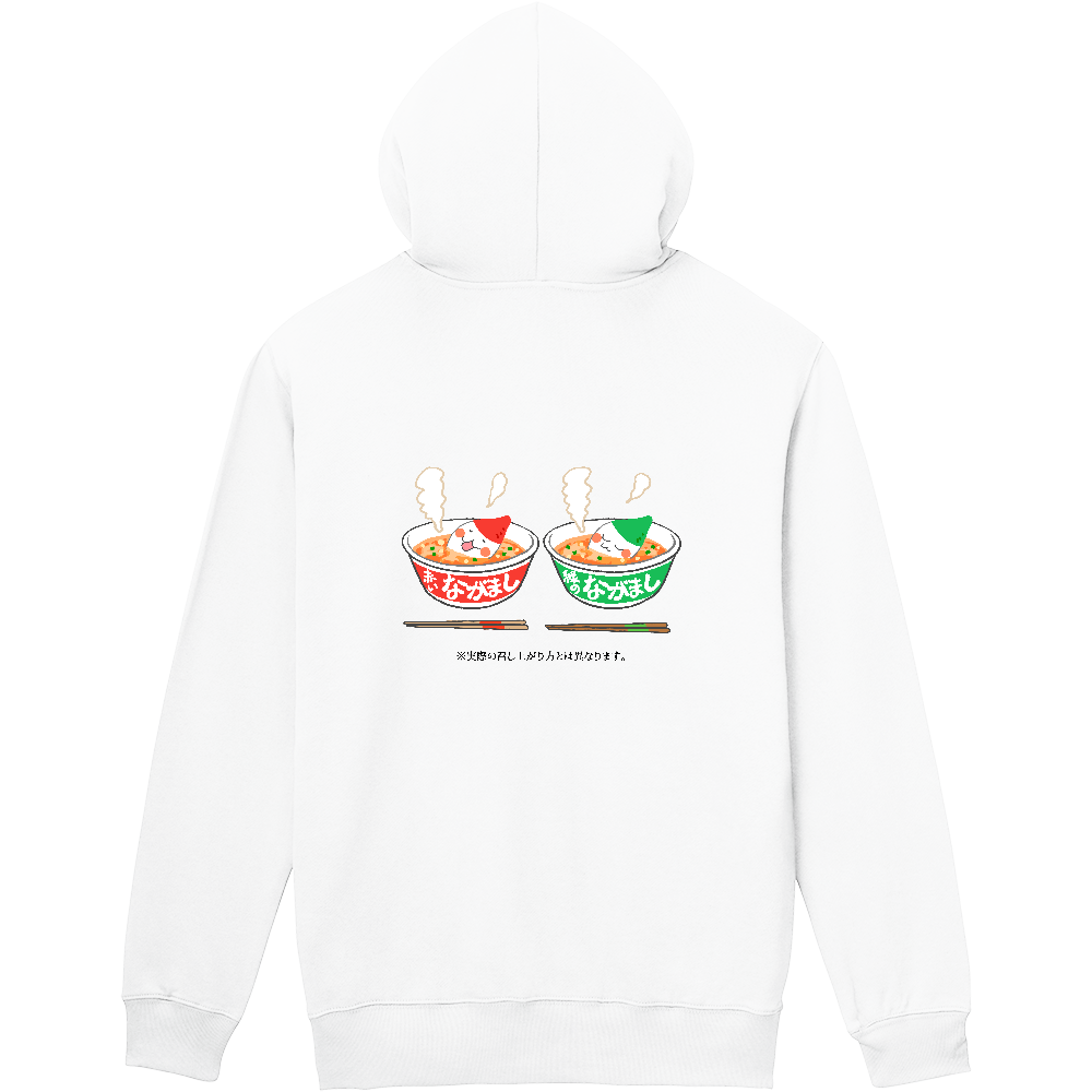 ながまし兄弟(軽量ジップアップパーカー/背面デザイン/白色)