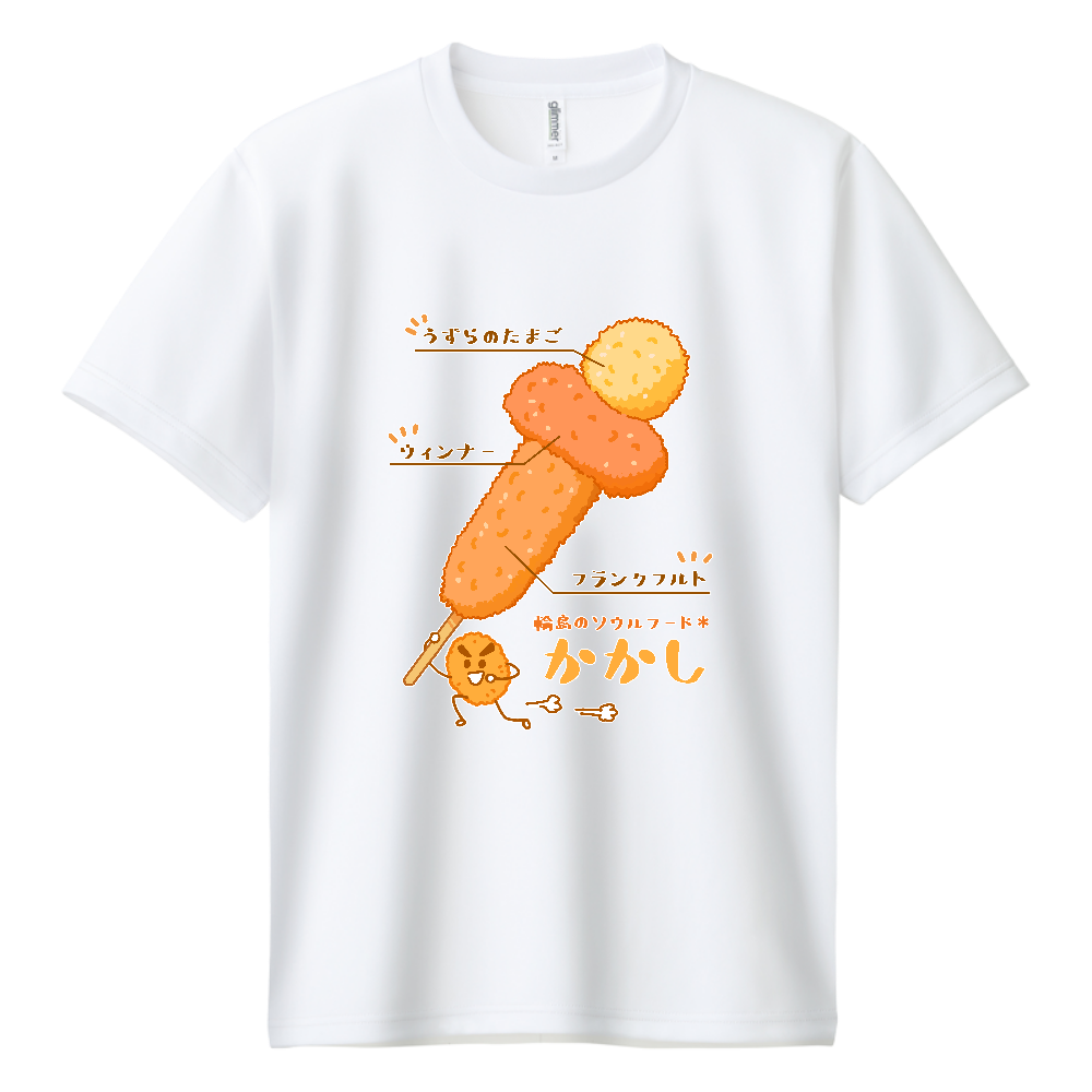 輪島市のソウルフードに定着した藤田総本店さんの「かかし」。 頭はうずらの卵、手は赤ウインナー、体はフランクフルトでできた揚げ物です。 昔から輪島市民の定番おかずのかかしがのとあつめに登場。 藤田さん定番のコロッケも一緒にいるよ。 汗をかいても不快にならないドライ素材を利用したTシャツです。 ※利益は全額被災地へ寄付いたします ※二次販売歓迎!ぜひご相談ください♬ ※藤田総本店様ご了承済みです
