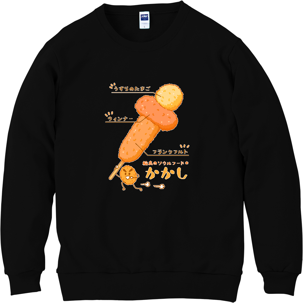 輪島市のソウルフードに定着した藤田総本店さんの「かかし」。 頭はうずらの卵、手は赤ウインナー、体はフランクフルトでできた揚げ物です。 昔から輪島市民の定番おかずのかかしがのとあつめに登場。 藤田さん定番のコロッケも一緒にいるよ。 こちらは軽量スウェットです。別で定番タイプもございます。 ※利益は全額被災地へ寄付いたします ※二次販売歓迎!ぜひご相談ください♬ ※藤田総本店様ご了承済みです