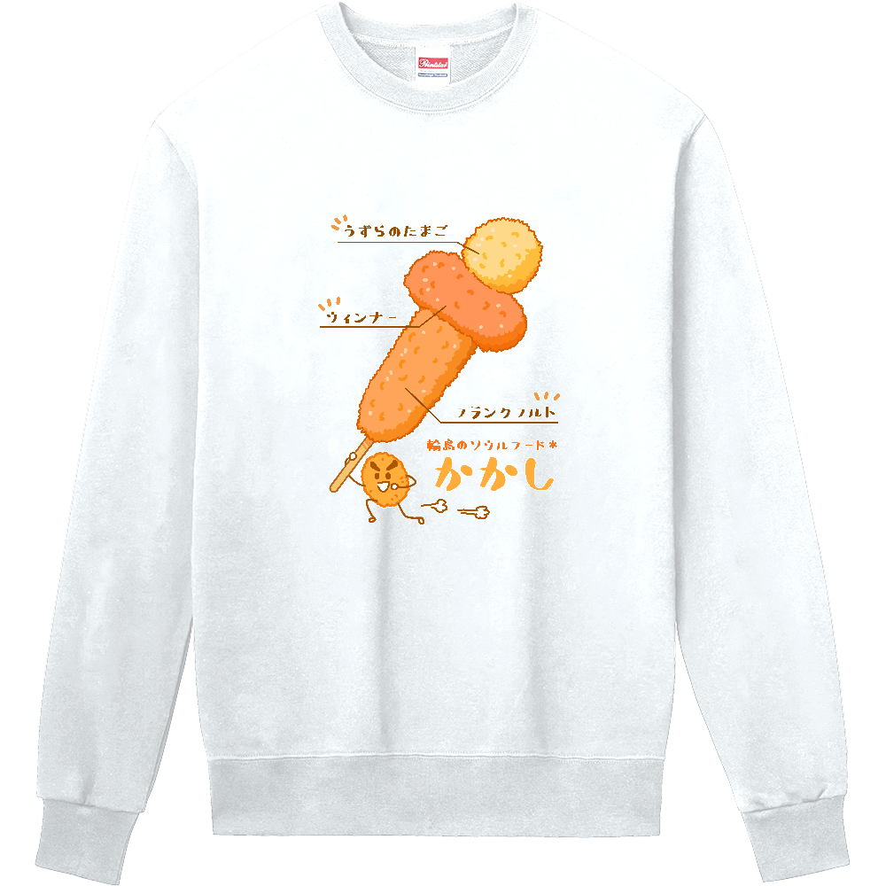 輪島市のソウルフードに定着した藤田総本店さんの「かかし」。 頭はうずらの卵、手は赤ウインナー、体はフランクフルトでできた揚げ物です。 昔から輪島市民の定番おかずのかかしがのとあつめに登場。 藤田さん定番のコロッケも一緒にいるよ。 こちらは定番スウェットです。別で軽量タイプもございます。 ※利益は全額被災地へ寄付いたします ※二次販売歓迎!ぜひご相談ください♬ ※藤田総本店様ご了承済みです