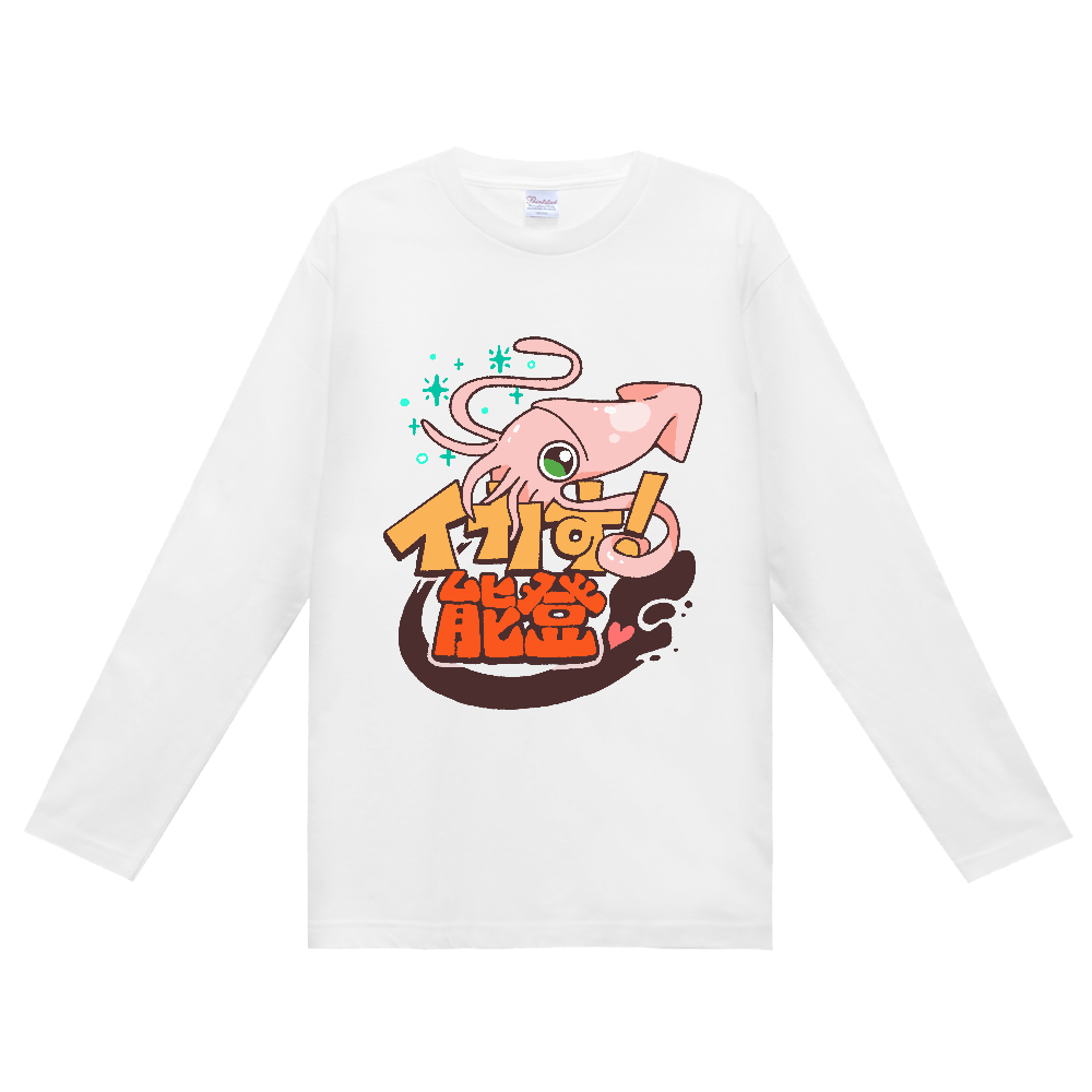能登町の小木港といえばイカですね。 イカの聖地にポップでキュートでイカしたイカがやってきた! 着れば着るほど味が出るよ(スルメだけに)。 肌寒い季節のお供に…長袖Tシャツです。 ※利益は全額被災地へ寄付いたします ※二次販売歓迎!ぜひご相談ください♬