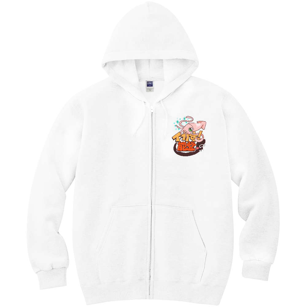 イカす!能登(軽量ジップアップパーカー/正面デザイン/白色)