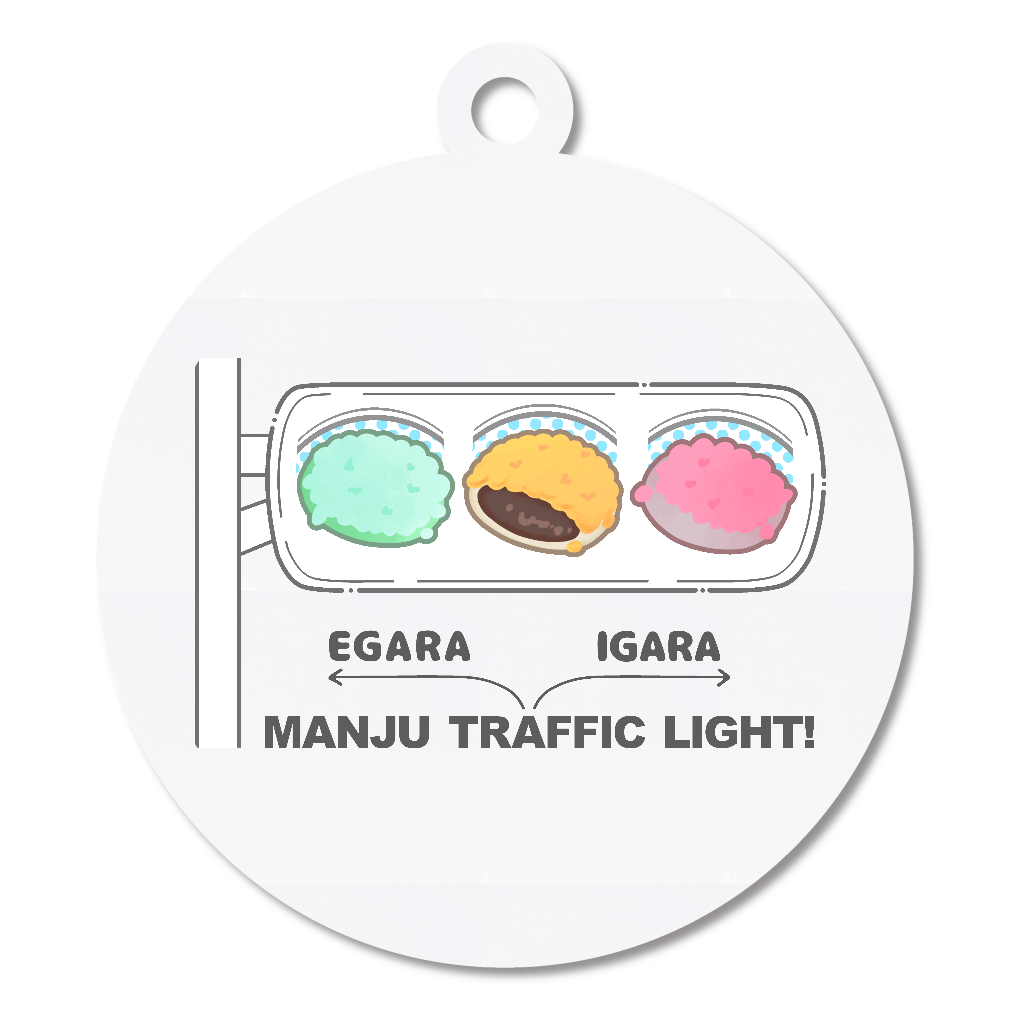 信号機の青・黄色・赤…よく見たらえがら/いがらまんじゅうに見えるね! ということで信号機とえがら/いがらまんじゅうを合体させてみました♪ えがら/いがらまんじゅうは止まらない~!! こちらは丸形のアクリルキーホルダー(6cm)です。 カラー:クリア ※利益は全額被災地へ寄付いたします ※二次販売歓迎!ぜひご相談ください♬