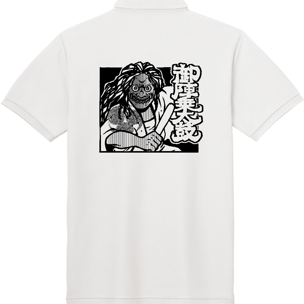 御陣乗太鼓・文字透過(定番ポロシャツ/背面デザイン/白色)