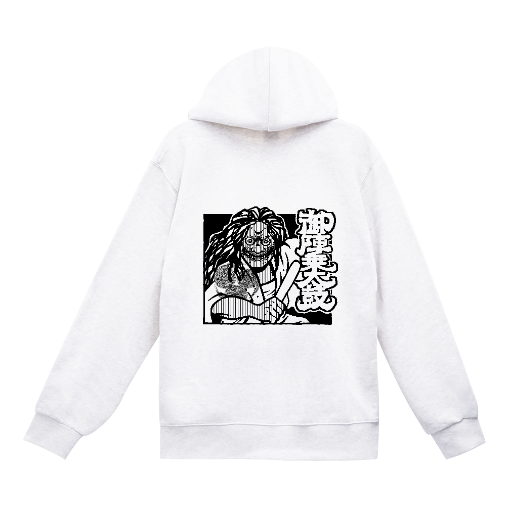 御陣乗太鼓・文字透過(定番ジップパーカー/背面デザイン/白色)