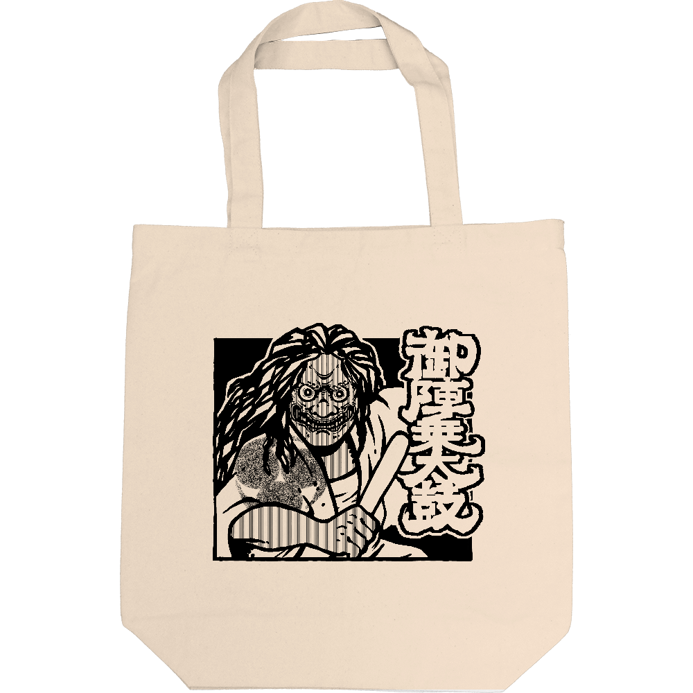輪島市名舟町に伝わる迫力満点の御陣乗太鼓。 上杉謙信の軍勢が攻めてきたときに、鬼や亡霊の面をかぶり太鼓を打ち鳴らして 追い払ったと伝えられています。県指定の無形民俗文化財にもなっています。 しっかりとした生地を使ったキャンバストートバッグです。 サイズ:M(本体:W36cm x H37cm x D11cm、持手:2.5cm x 47cm、内容量:10ℓ ※利益は全額被災地へ寄付いたします ※二次販売歓迎!ぜひご相談ください♬