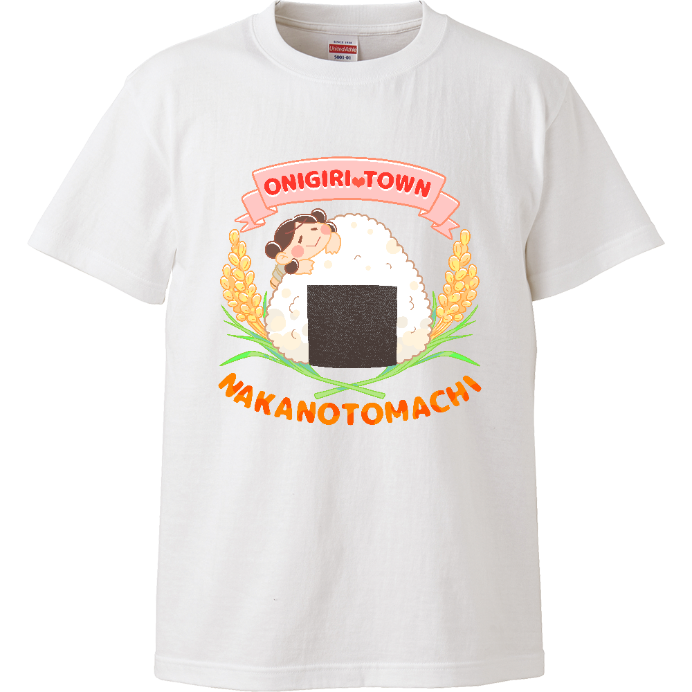 おにぎりタウン(半袖/正面デザイン/白色)
