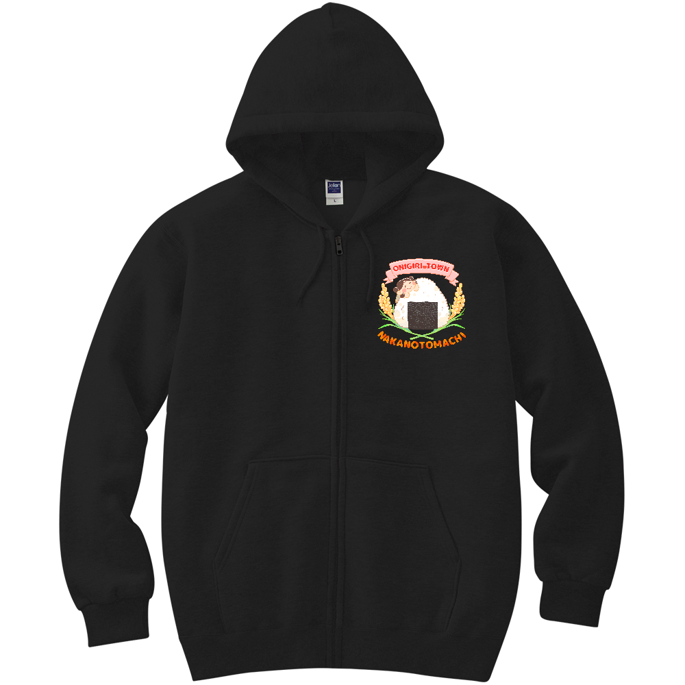おにぎりタウン(軽量ジップアップパーカー/正面デザイン/白色以外)