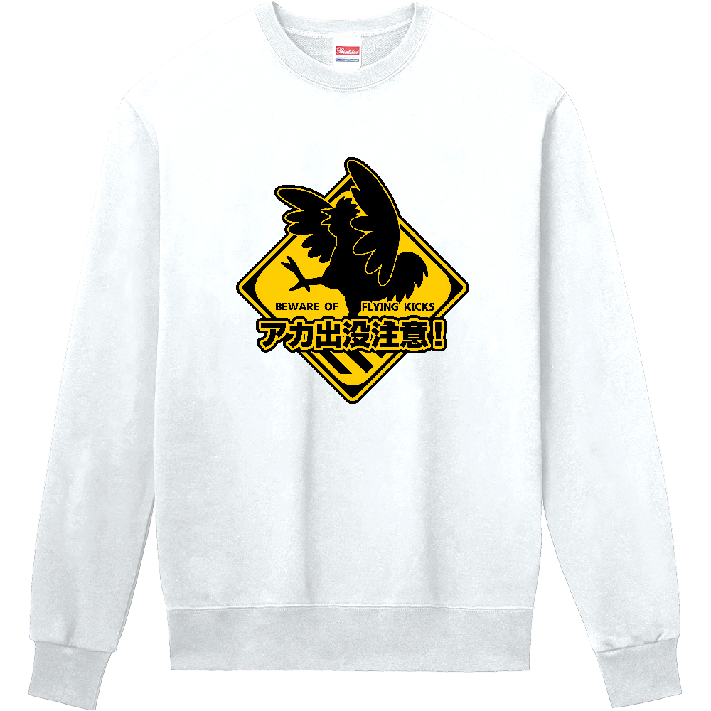 アカ出没注意!◇(定番スウェット/正面デザイン/白色)