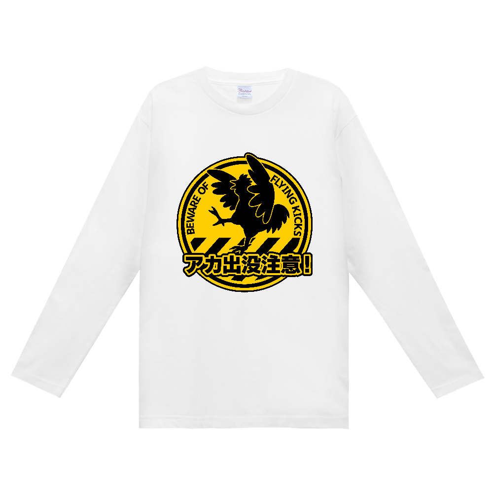 アカ出没注意!〇(長袖/正面デザイン/白色)