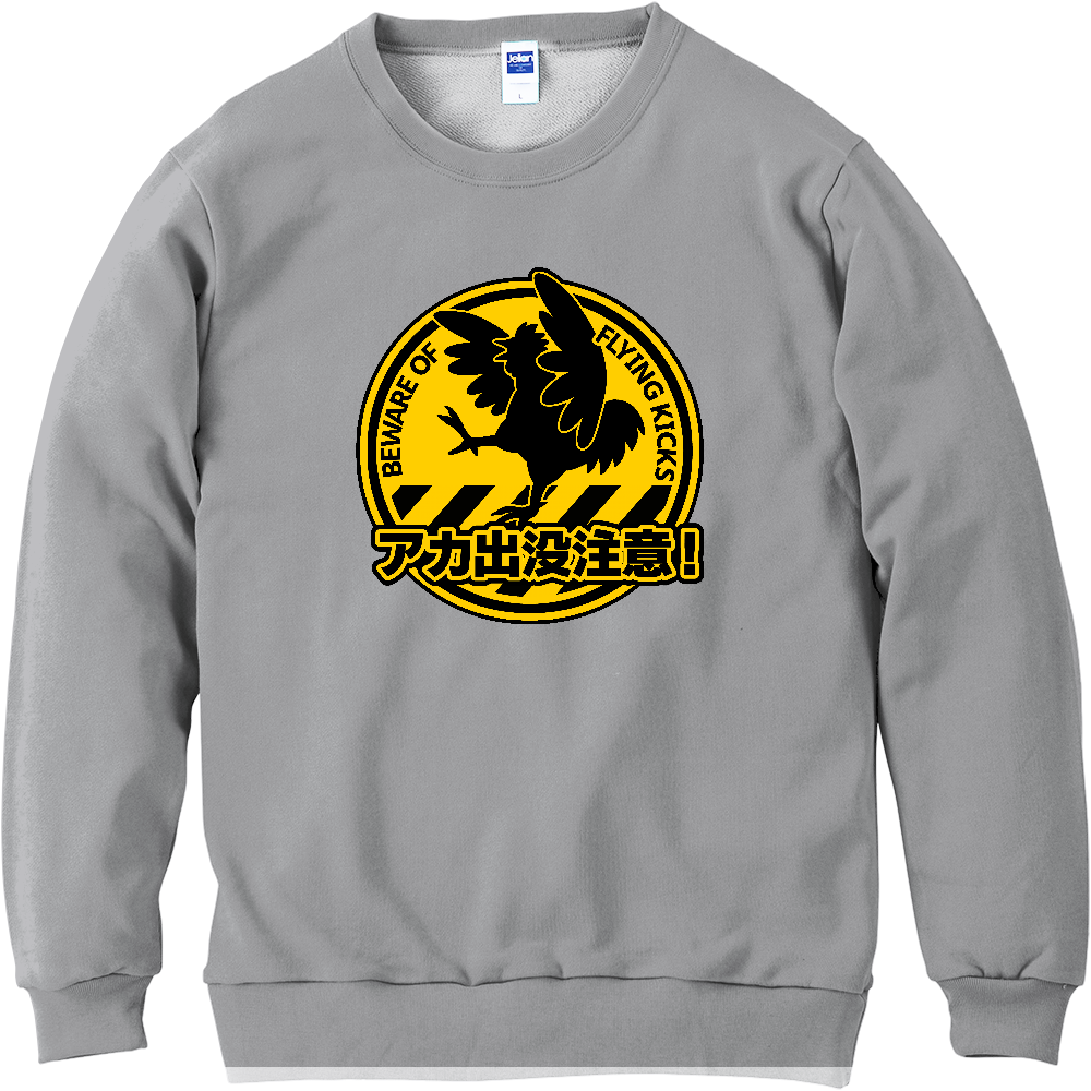 のとあつめのデザイナーがとうとうアカに蹴られました!! それを記念してアカ注意看板を作成しました。 アカは止まれ!近づくときはみなさん慎重に(笑) こちらは軽量スウェットです。別で定番タイプもございます。 ※利益は全額被災地へ寄付いたします ※二次販売歓迎!ぜひご相談ください♬