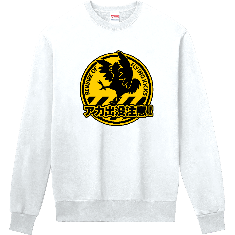 アカ出没注意!〇(定番スウェット/正面デザイン/白色)