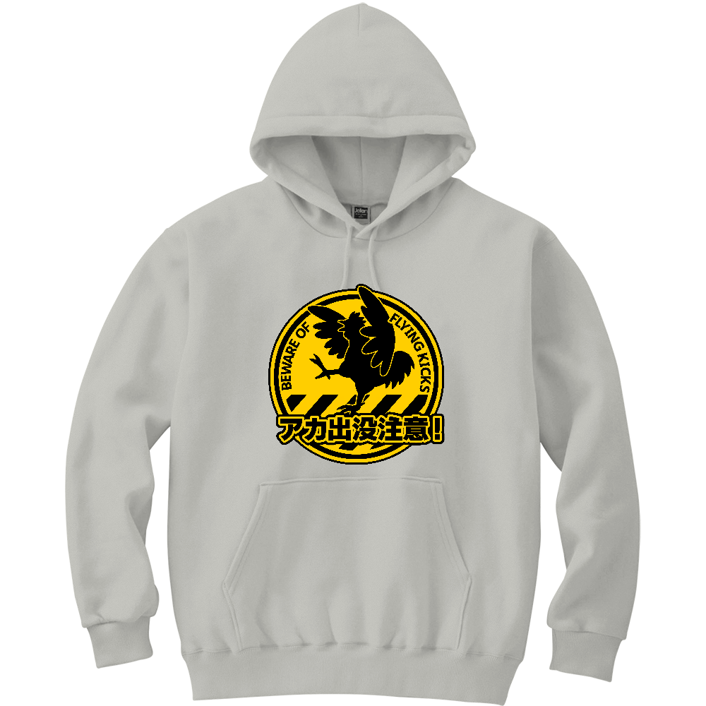 のとあつめのデザイナーがとうとうアカに蹴られました!! それを記念してアカ注意看板を作成しました。 アカは止まれ!近づくときはみなさん慎重に(笑) こちらは軽量プルパーカーです。別で定番タイプもございます。 ※利益は全額被災地へ寄付いたします ※二次販売歓迎!ぜひご相談ください♬
