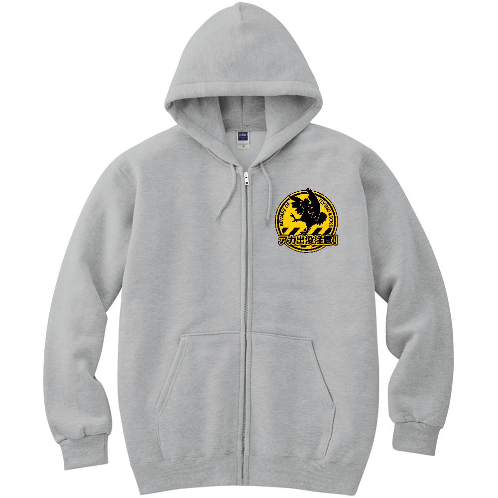 アカ出没注意!〇(軽量ジップアップパーカー/正面デザイン/白色以外)