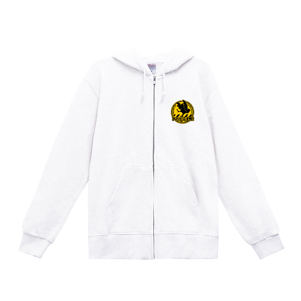 アカ出没注意!〇(定番ジップパーカー/正面デザイン/白色)