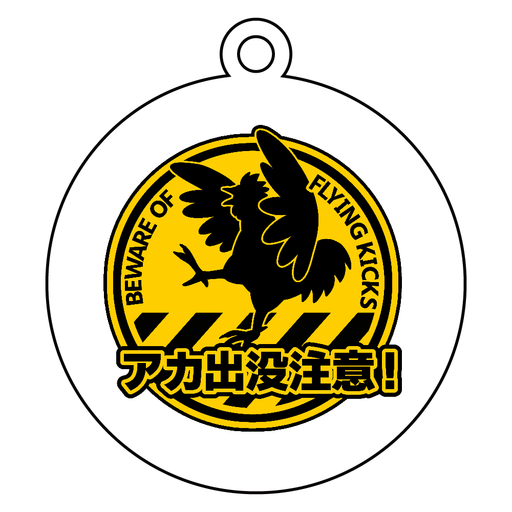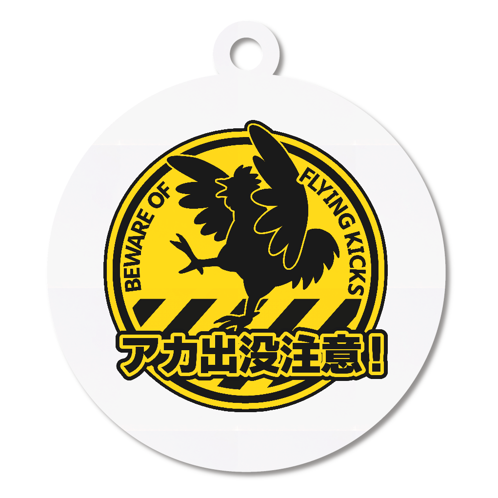 アカ出没注意!〇(アクリルキーホルダー・丸型6cm/クリア)