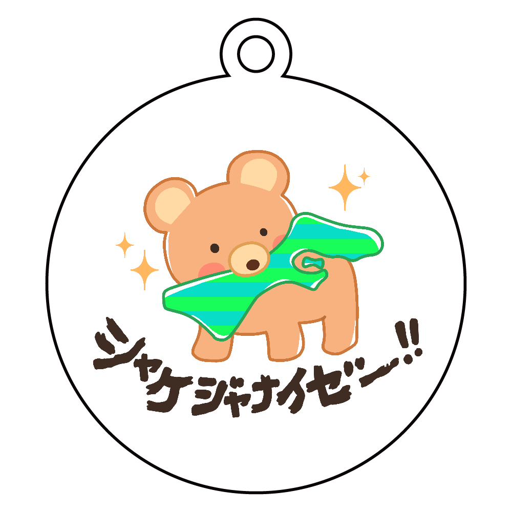 シャケナベイベー♪ 熊の大好物といえば…鮭(シャケ)!! 大きなシャケを捕まえて大満足なクマさん… でもそれ、シャケジャナイゼー(鮭じゃないぜ)w こちらは丸形のアクリルキーホルダー(6cm)です。 カラー:クリア ※利益は全額被災地へ寄付いたします ※二次販売歓迎!ぜひご相談ください♬