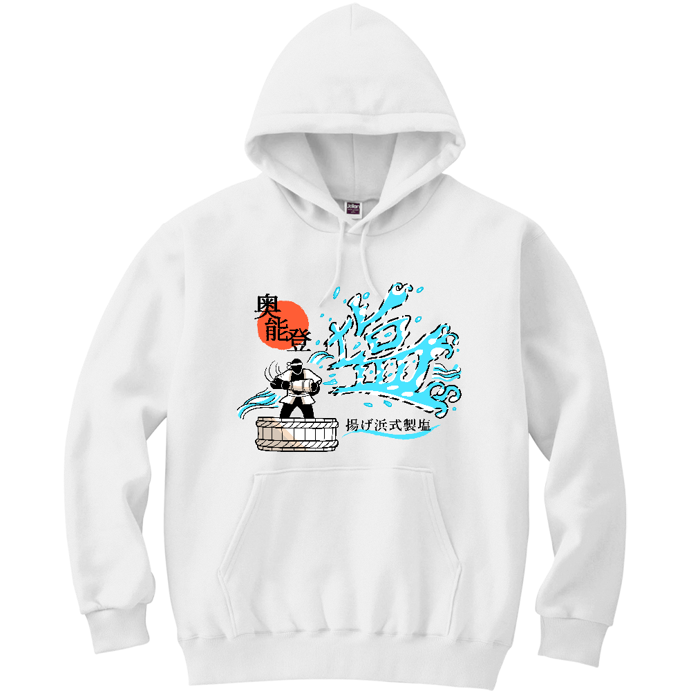 揚げ浜式製塩(軽量プルパーカー/正面デザイン/白色)