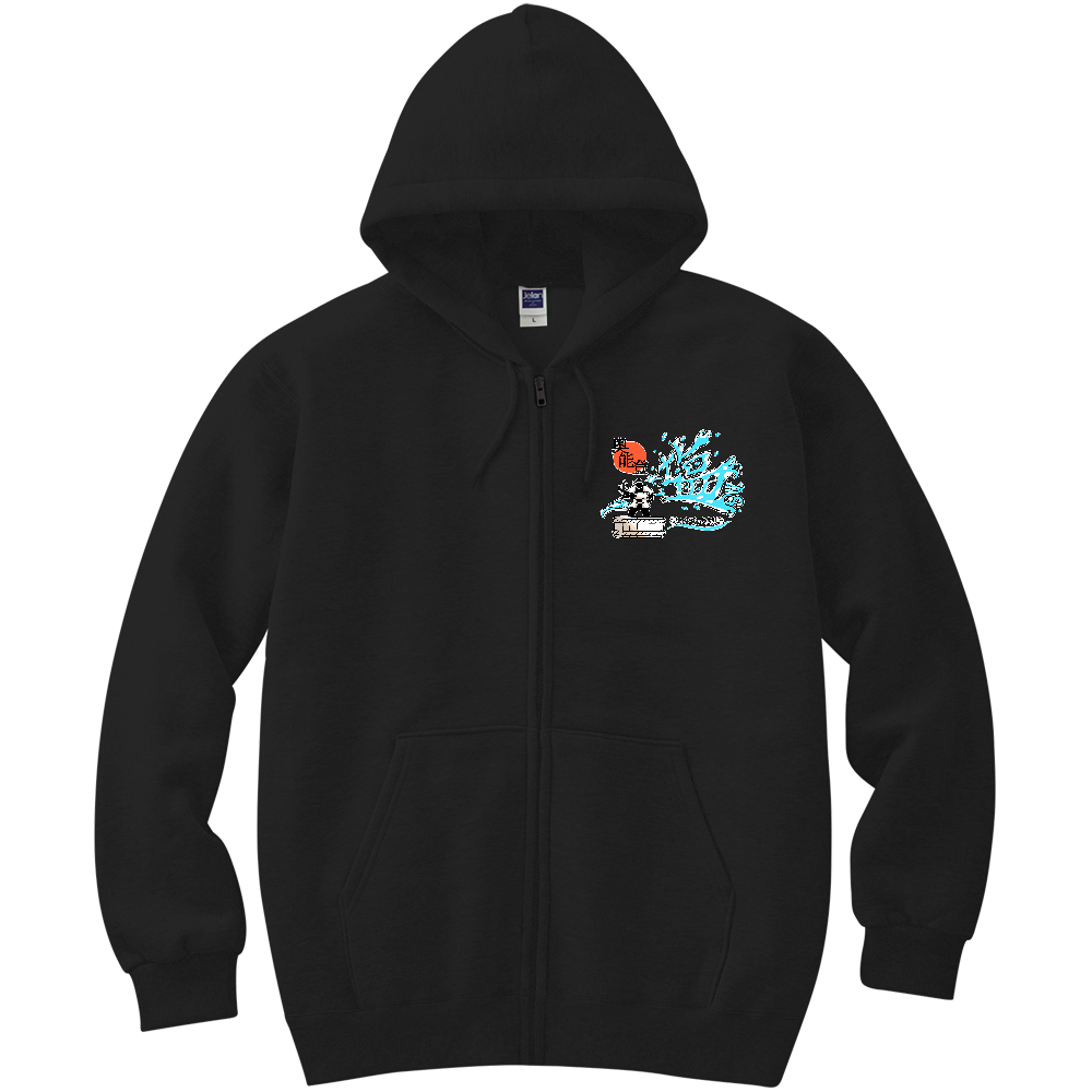 揚げ浜式製塩・文字フチ有(軽量ジップアップパーカー/正面デザイン/白色以外)