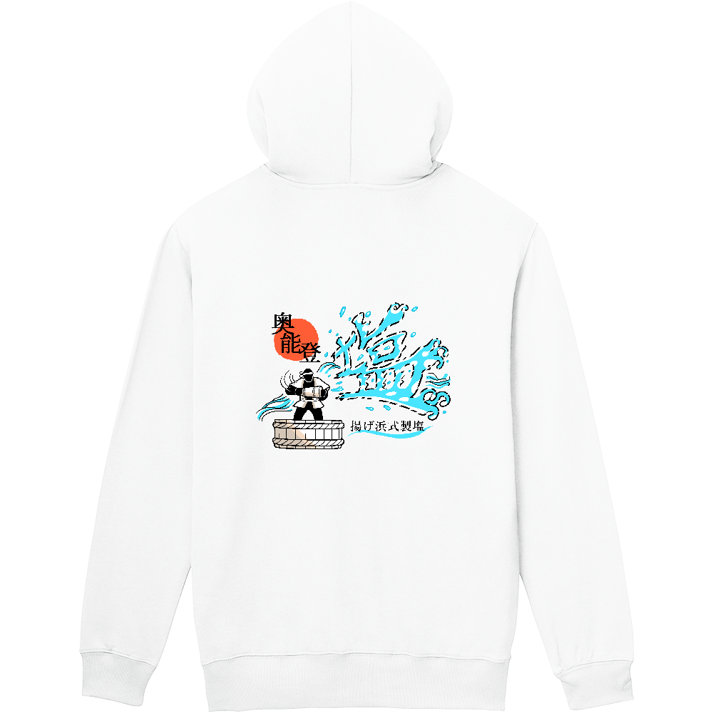揚げ浜式製塩(軽量ジップアップパーカー/背面デザイン/白色)