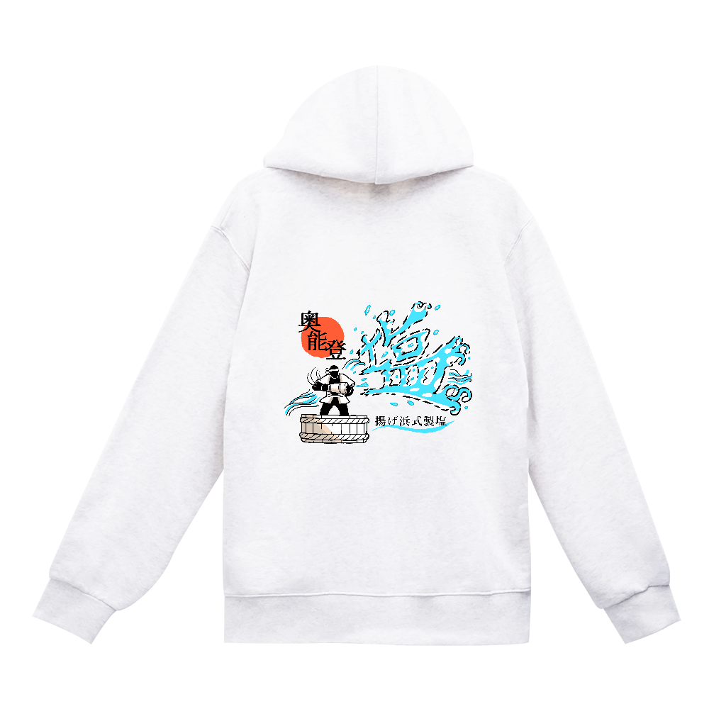 揚げ浜式製塩(定番ジップパーカー/背面デザイン/白色)