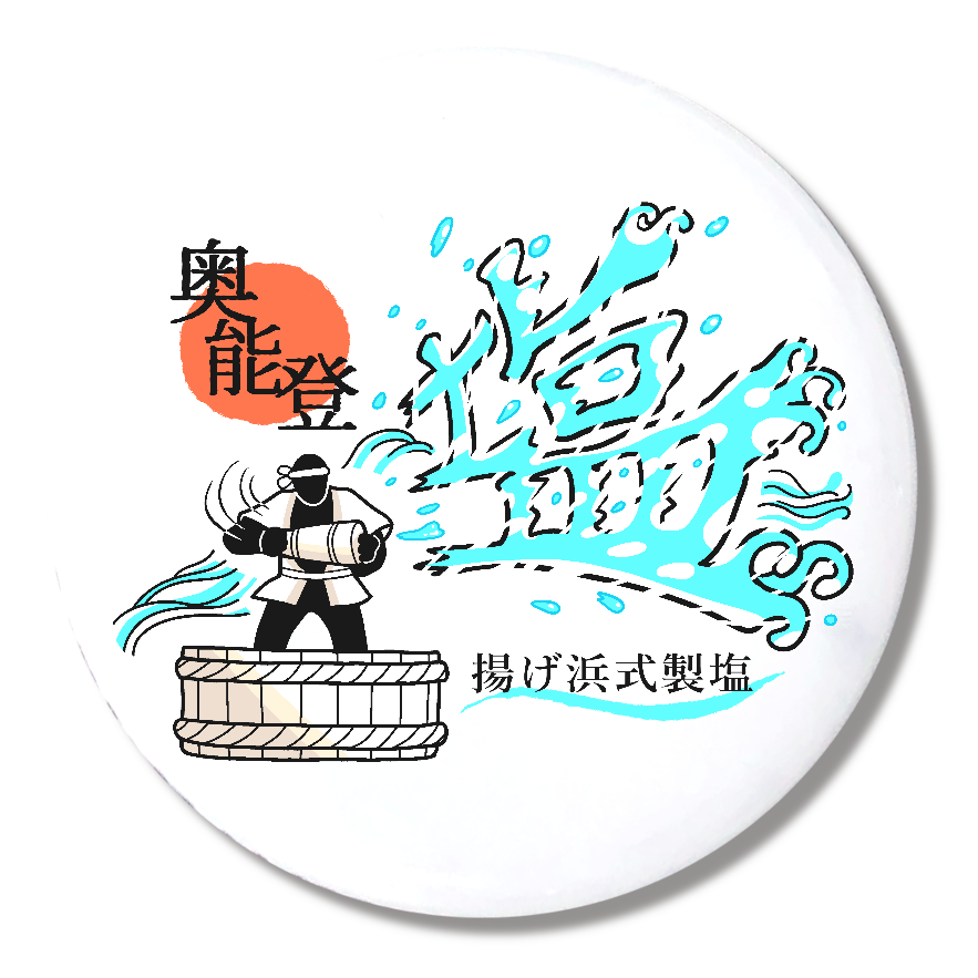 揚げ浜式製塩…それは石川県珠洲市で継承されてきた伝統技法。 桶で海水を汲み上げ、全て手作業作られる塩はまろやかで別格の美味しさです。 守りたい能登の伝統を胸に、食したい能登の塩を食卓に…。 さりげなく日常を彩る缶バッジです。 ※利益は全額被災地へ寄付いたします ※二次販売歓迎!ぜひご相談ください♬