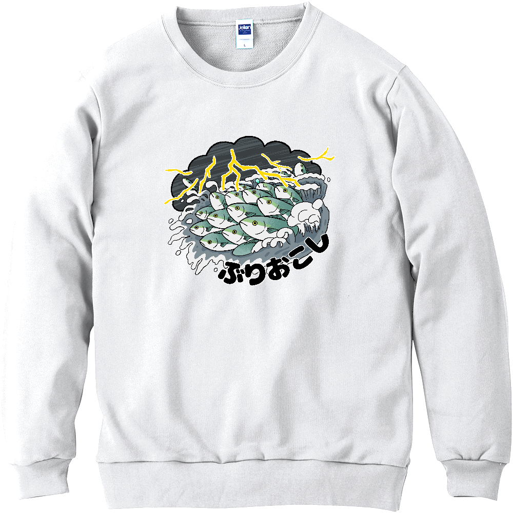 冬の嵐の雷…あの雷のことを「ぶり起こし」と言います。 ぶり起こしが始まると鰤漁のシーズンが始まるといわれています。 まさしくブリの目覚まし時計や~!! こちらは軽量スウェットです。別で定番タイプもございます。 ※利益は全額被災地へ寄付いたします ※二次販売歓迎!ぜひご相談ください♬