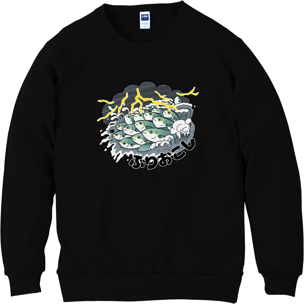 冬の嵐の雷…あの雷のことを「ぶり起こし」と言います。 ぶり起こしが始まると鰤漁のシーズンが始まるといわれています。 まさしくブリの目覚まし時計や~!! こちらは軽量スウェットです。別で定番タイプもございます。 ※利益は全額被災地へ寄付いたします ※二次販売歓迎!ぜひご相談ください♬