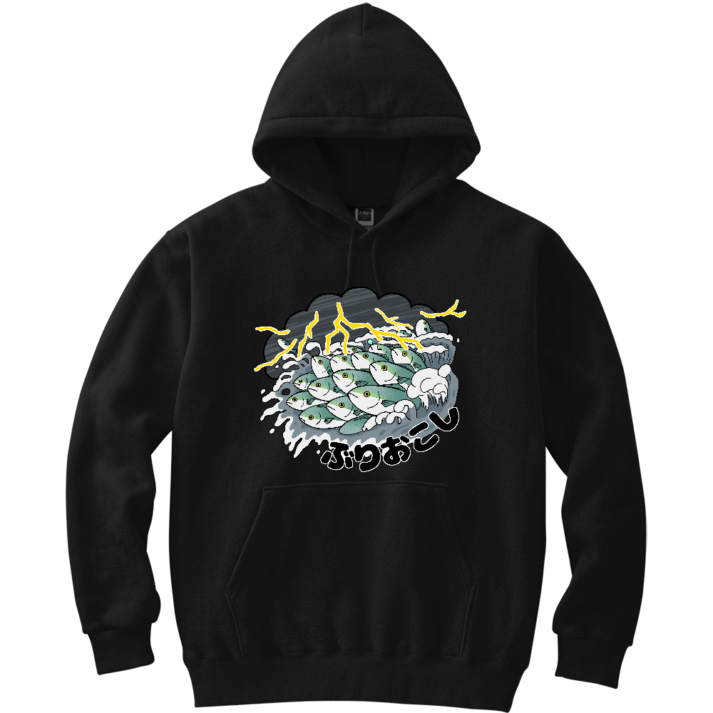 冬の嵐の雷…あの雷のことを「ぶり起こし」と言います。 ぶり起こしが始まると鰤漁のシーズンが始まるといわれています。 まさしくブリの目覚まし時計や~!! こちらは軽量プルパーカーです。別で定番タイプもございます。 ※利益は全額被災地へ寄付いたします ※二次販売歓迎!ぜひご相談ください♬