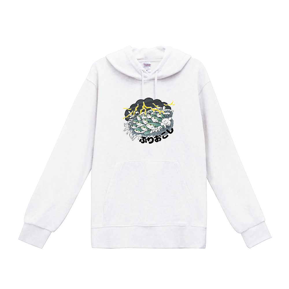 ぶりおこし(定番プルパーカー/正面デザイン/白色)
