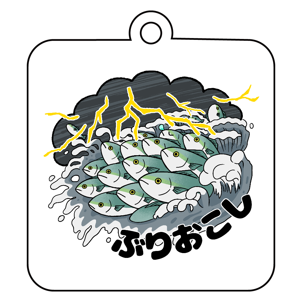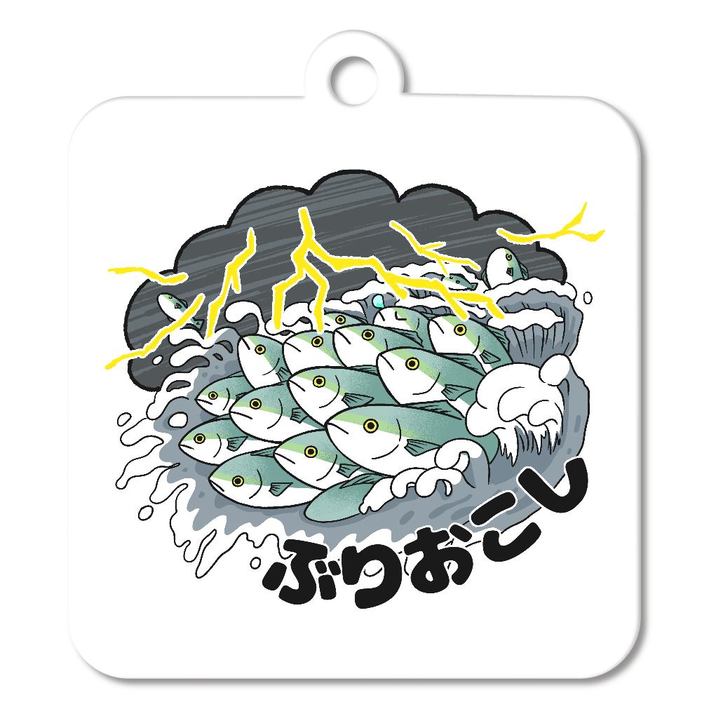 冬の嵐の雷…あの雷のことを「ぶり起こし」と言います。 ぶり起こしが始まると鰤漁のシーズンが始まるといわれています。 まさしくブリの目覚まし時計や~!! こちらは四角形のアクリルキーホルダー(6cm)です。 カラー:クリア ※利益は全額被災地へ寄付いたします ※二次販売歓迎!ぜひご相談ください♬