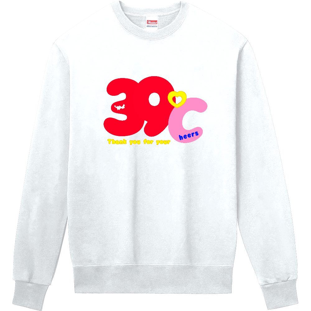 【ネタ枠】39℃(定番スウェット/正面デザイン/白色)