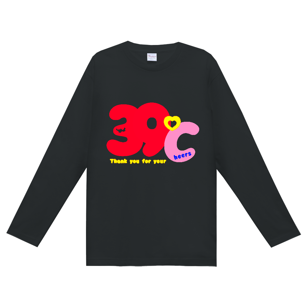 ぱっと見は39℃に見えるけど、 Thank you for your cheersを表しました。 39 = thank you ℃の°= 感謝のハート ℃のC = cheersのC 能登の応援ありがとうの気持ちをPOPに表現(笑) 肌寒い季節のお供に…長袖Tシャツです。 ※利益は全額被災地へ寄付いたします ※二次販売歓迎!ぜひご相談ください♬