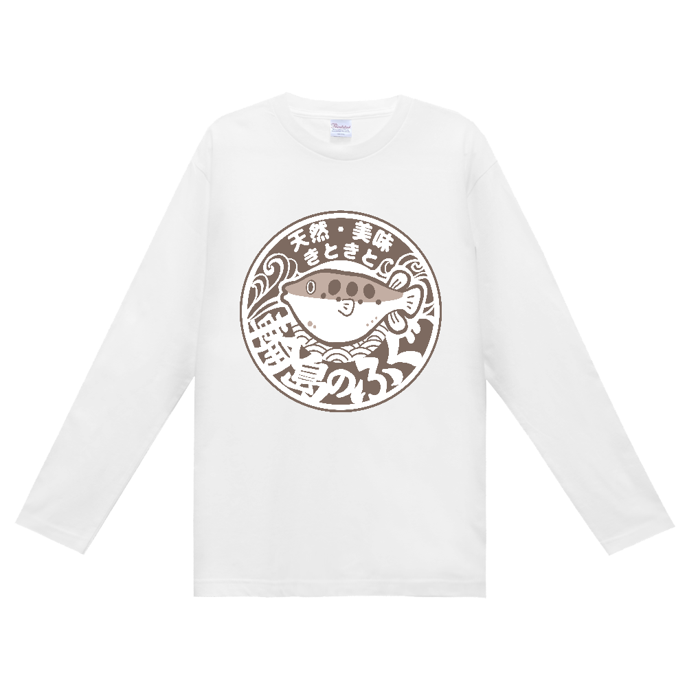能登では「ふぐ」はとても身近なお魚です。 輪島港では5年連続でフグの漁獲量日本一を記録したことがあります。 身近な輪島のふぐ、食べるだけではなくて身に着けてみませんか? 肌寒い季節のお供に…長袖Tシャツです。 ※利益は全額被災地へ寄付いたします ※二次販売歓迎!ぜひご相談ください♬
