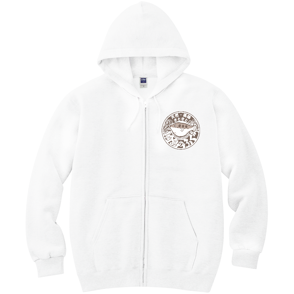 輪島のふぐ(軽量ジップアップパーカー/正面デザイン/白色)