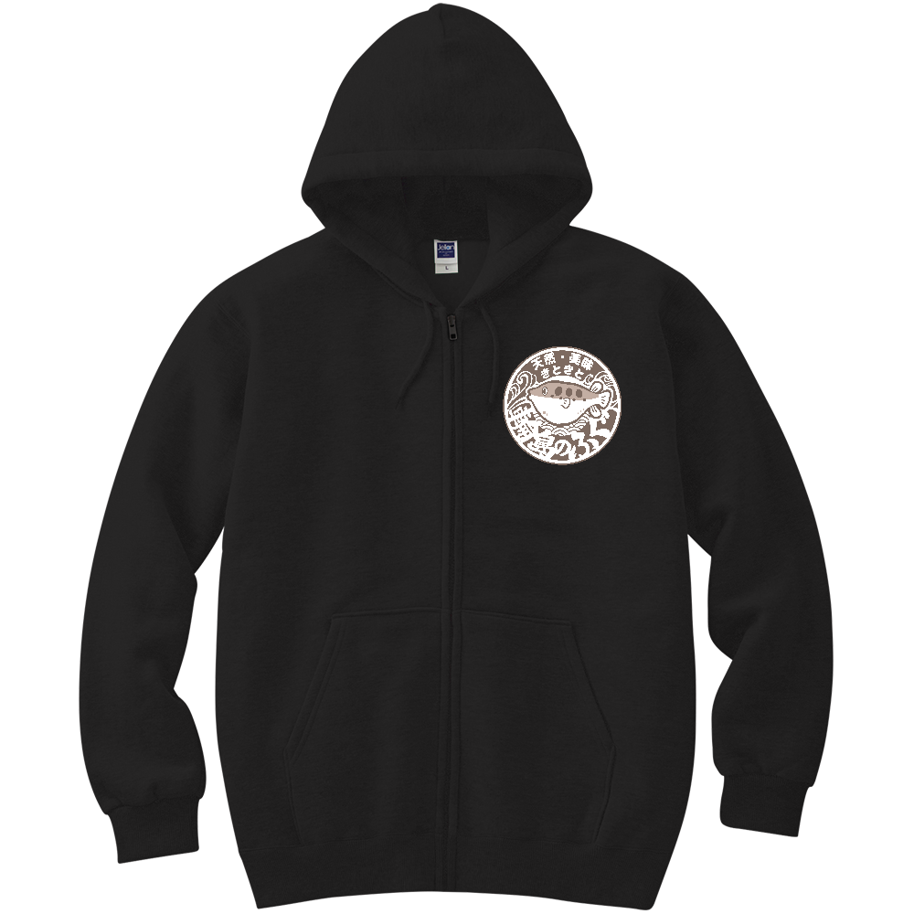 輪島のふぐ(軽量ジップアップパーカー/正面デザイン/白色以外)