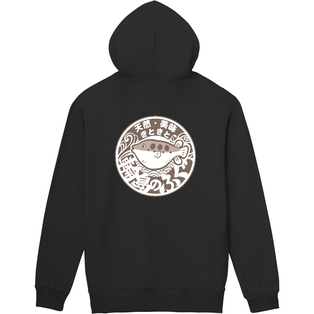 輪島のふぐ(軽量ジップアップパーカー/背面デザイン/白色以外)