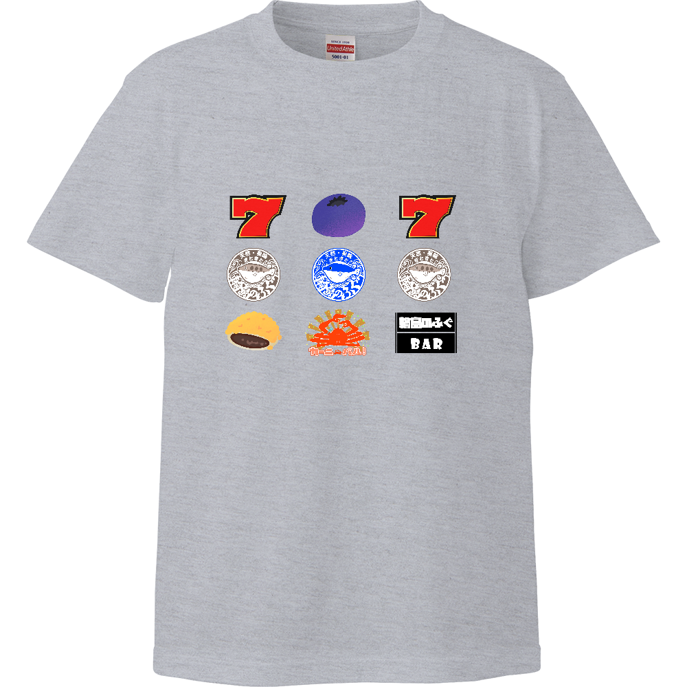 本枠デザインを使ってネタ枠で遊んでみたシリーズ。 スロット風に遊んでみたよ!輪島のふぐが揃ったよー! しっかりとした生地を使った半袖シャツです。 ※利益は全額被災地へ寄付いたします ※二次販売歓迎!ぜひご相談ください♬