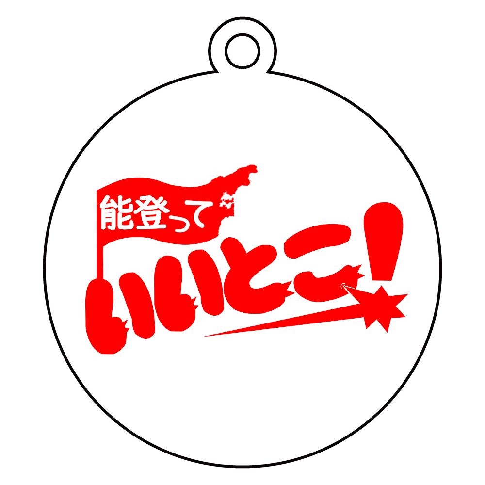 能登っていいところだよ!の気持ちを表した、どこかで見たことのあるデザイン案です。 こちらは丸形のアクリルキーホルダー(6cm)です。 カラー:クリア ※利益は全額被災地へ寄付いたします ※二次販売歓迎!ぜひご相談ください♬