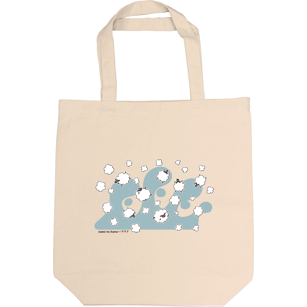 冬の日本海の風物詩「波の花」をモチーフにしたデザインです。 でもよく見ると、泡に紛れて何かいる?あれは…ひつじさん!? しっかりとした生地を使ったキャンバストートバッグです✨ サイズ:M(本体:W36cm x H37cm x D11cm、持手:2.5cm x 47cm、内容量:10ℓ) ※利益は全額被災地へ寄付いたします ※二次販売歓迎!ぜひご相談ください♬