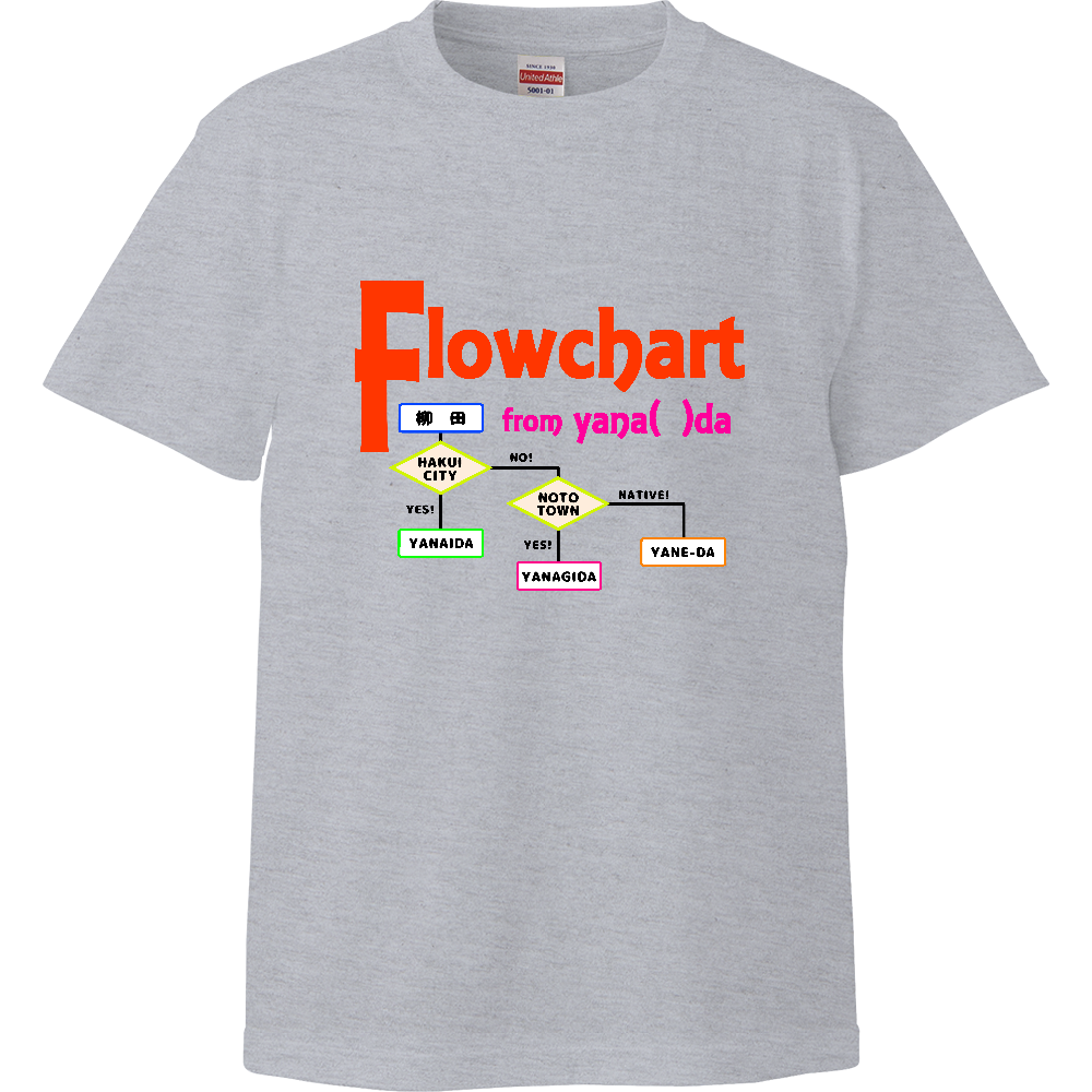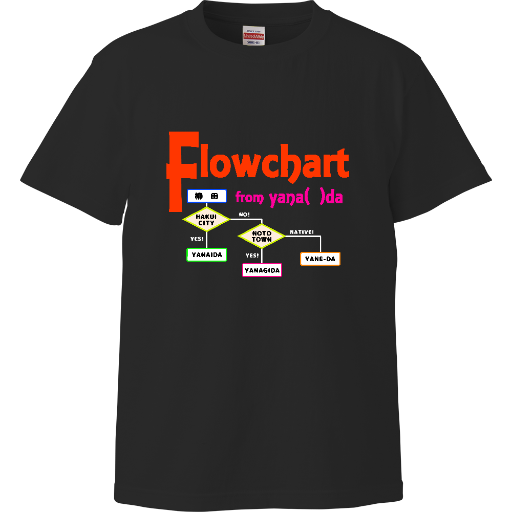 【ネタ枠】Flowchart from yana( )da・黒文字(半袖/正面デザイン/白色以外)