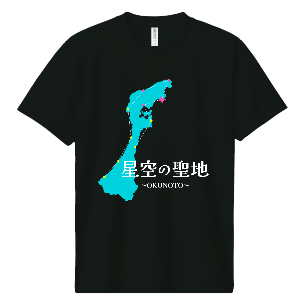 星空の聖地・黒文字・柄大きめ(ドライTシャツ/正面デザイン/白色以外)