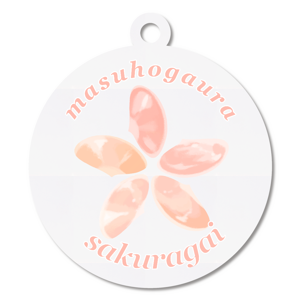 増穂浦の桜貝・文字横(クリルキーホルダー・丸型6cm/クリア)