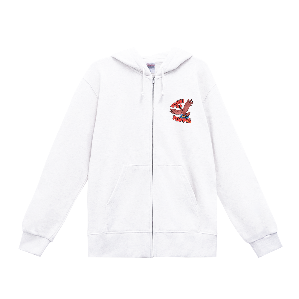 とんびがとっぴ!(定番ジップパーカー/正面デザイン/白色)