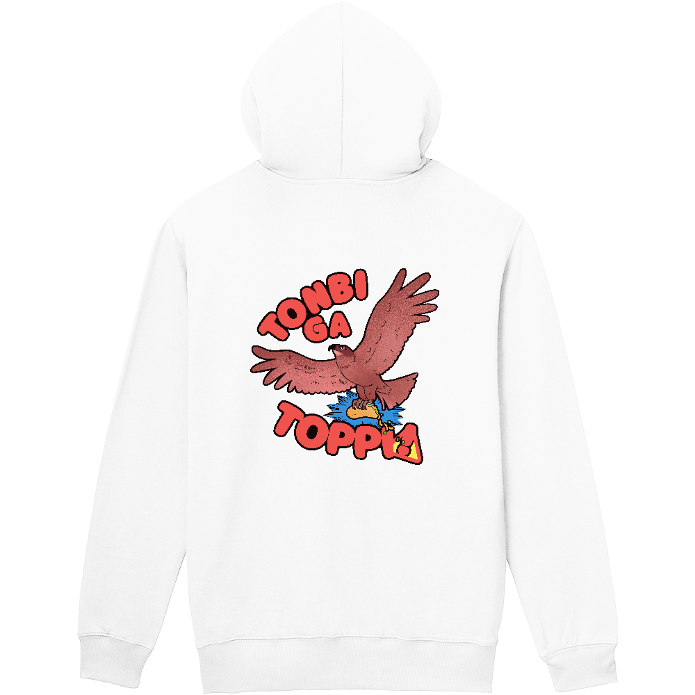 とんびがとっぴ!(定番プルパーカー/正面デザイン/白色)