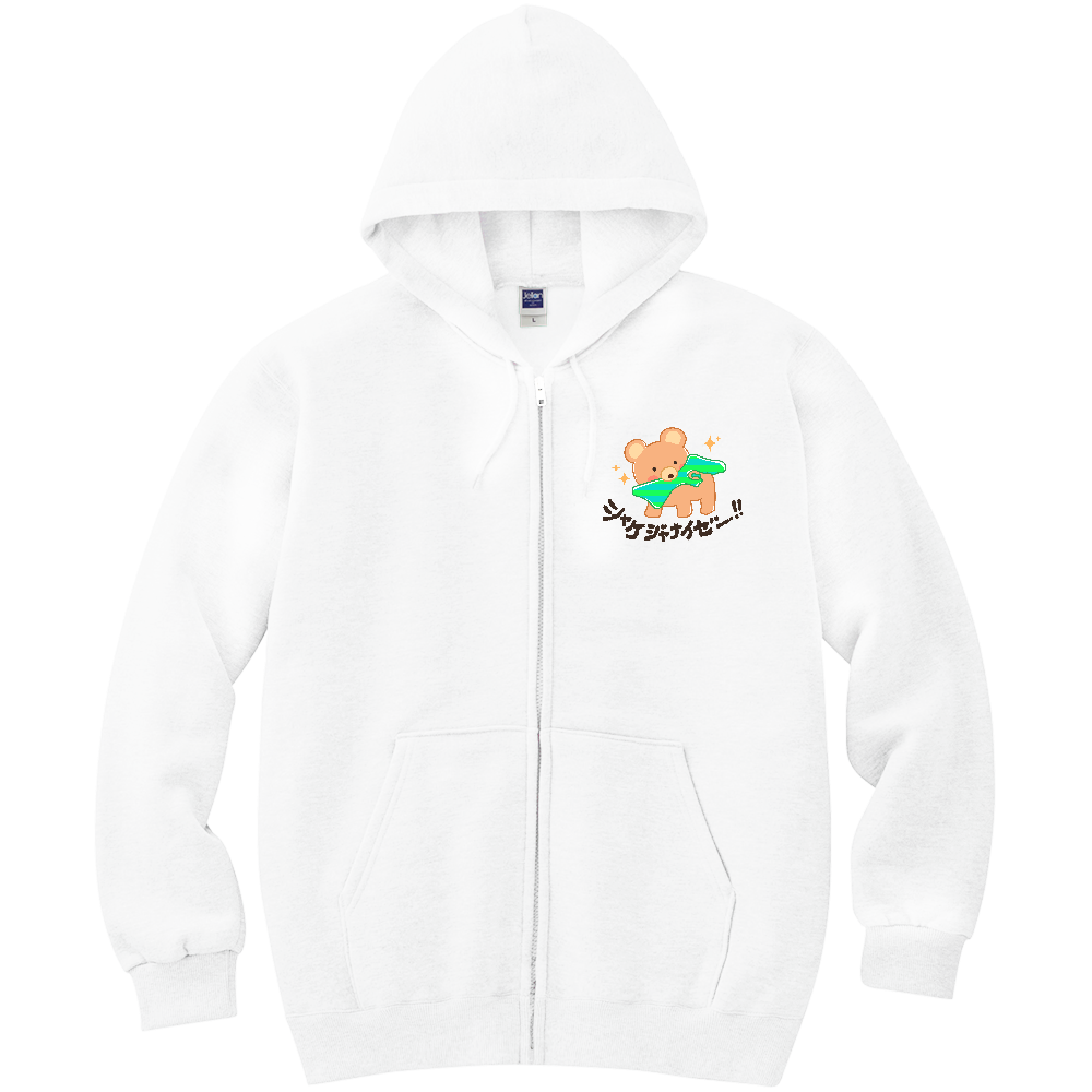 シャケジャナイゼー(定番ジップパーカー/正面デザイン/白色)