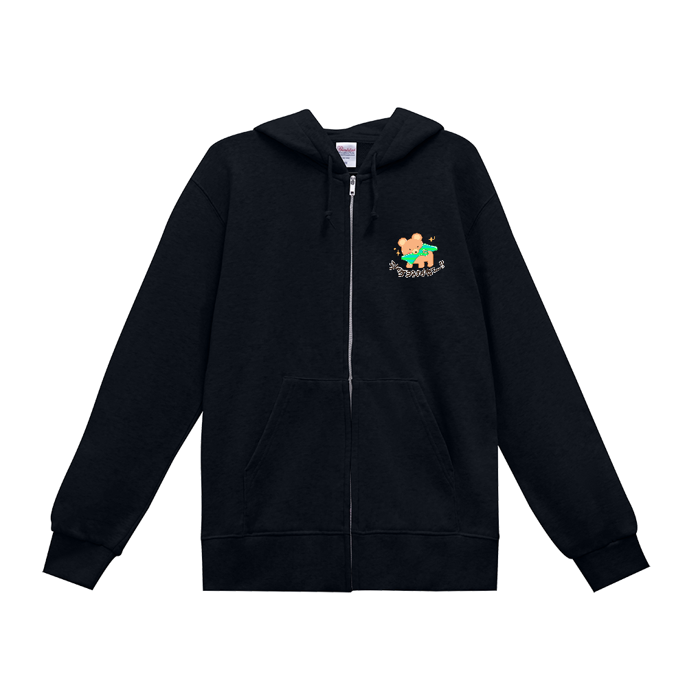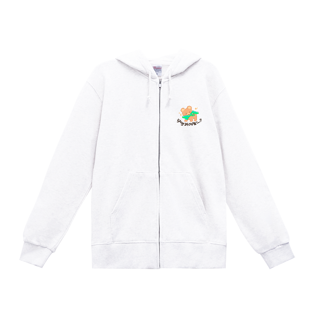 シャケジャナイゼー・フチあり(定番ジップパーカー/正面デザイン/白色以外)