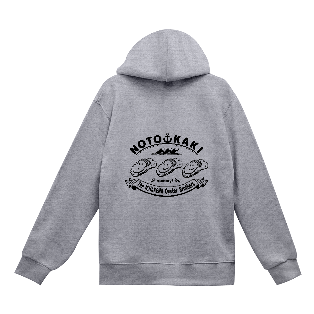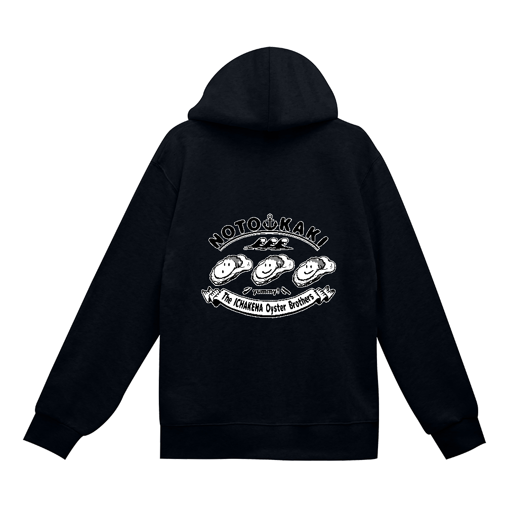 いちゃけな能登かき・白フチ有(定番ジップパーカー/背面デザイン/白色以外)