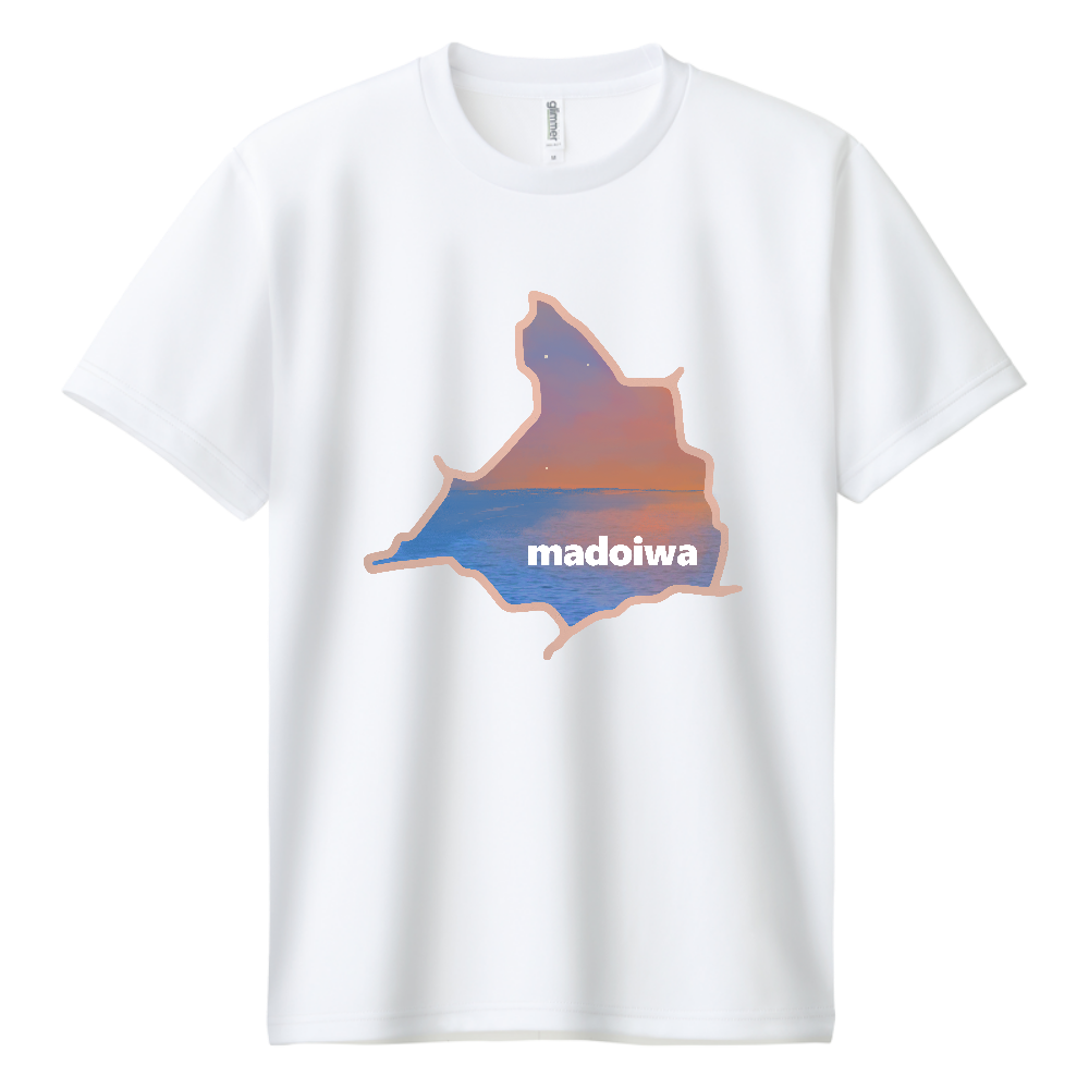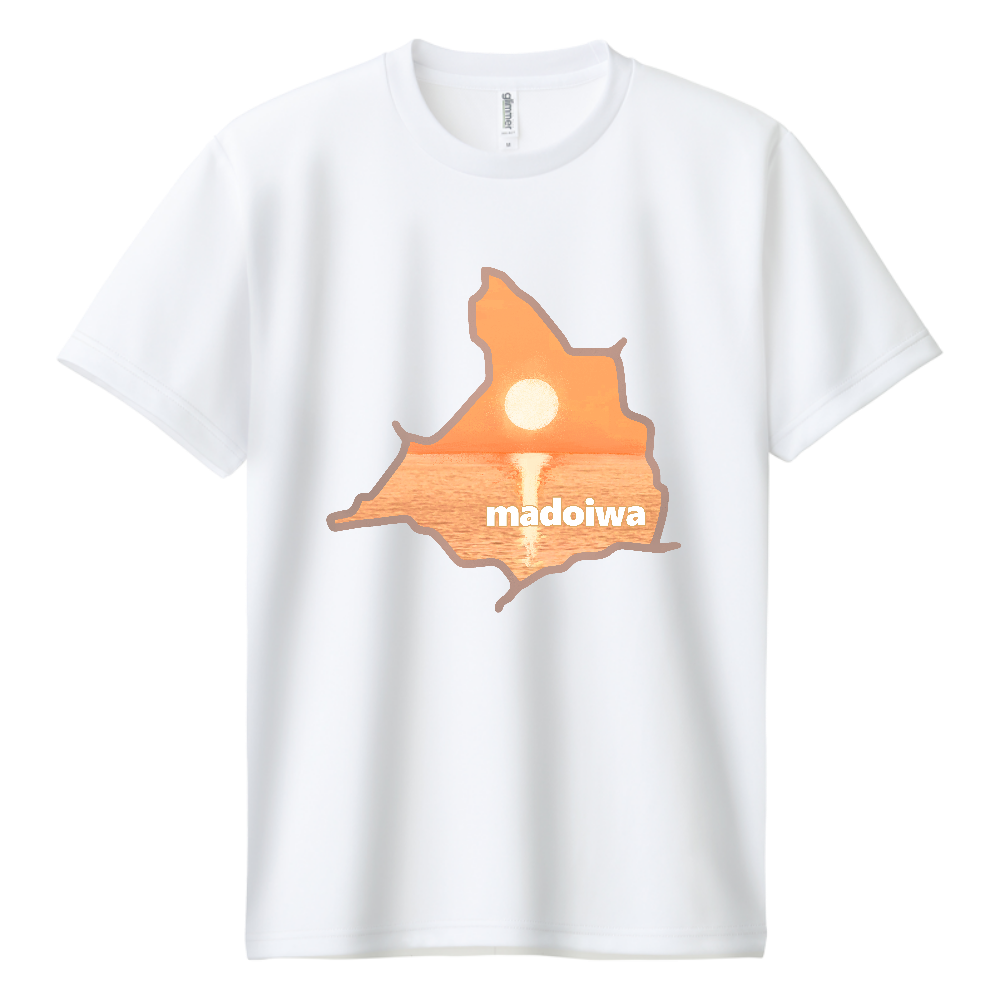 かつての窓岩・夕日(ドライTシャツ/正面デザイン/白色)