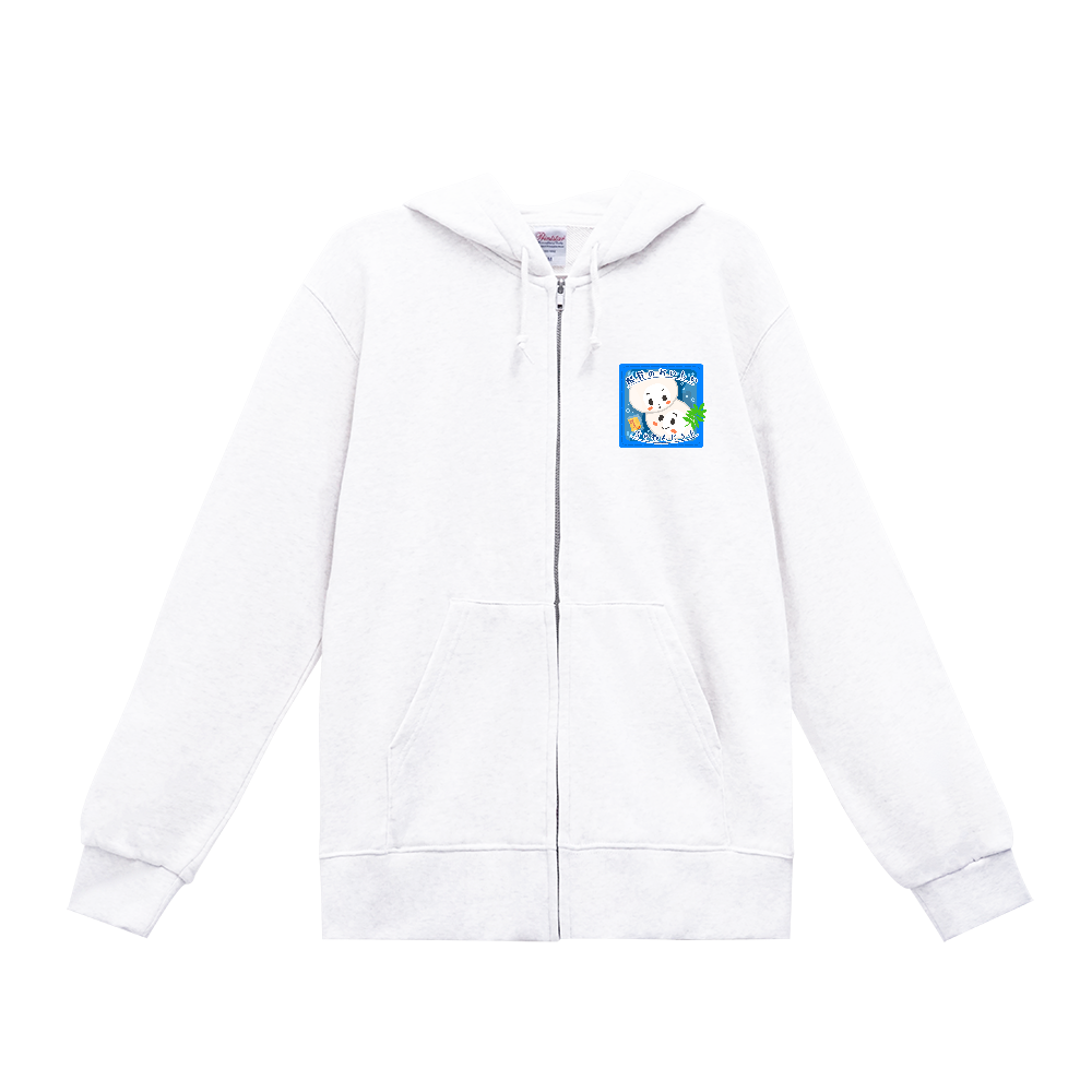 能登の茶わん豆腐(定番ジップパーカー/正面デザイン/白色)